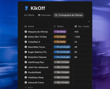 Esse sistema viabiliza uma gestão mais eficiente, centralizada e orientada a resultados financeiros concretos, permitindo ao gestor analisar métricas em tempo real, identificar gargalos produtivos e tomar decisões rápidas, que aceleram o teste e a escalabilidade das ofertas, elevando o potencial de geração de receita da operação.